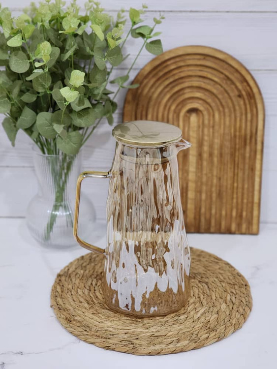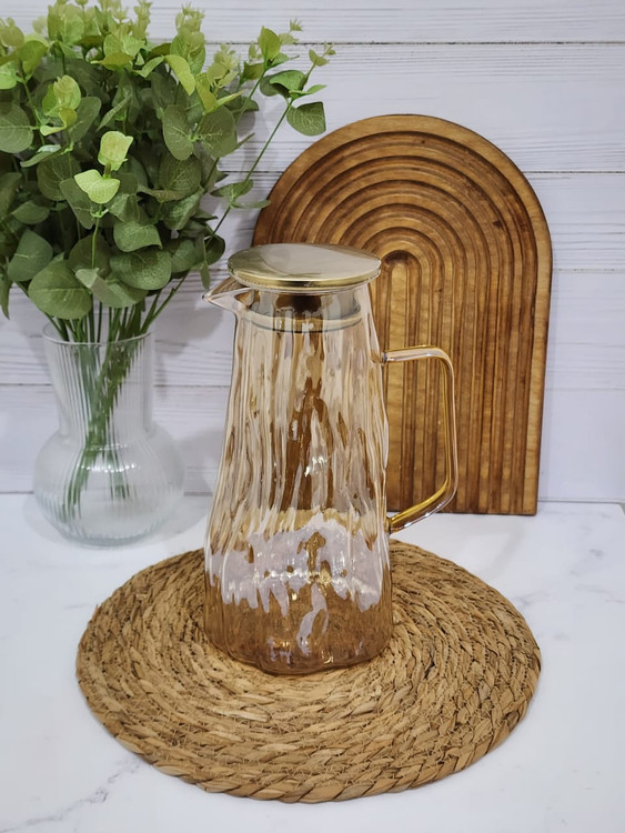 پارچ آب پیرکس وارداتی _پارچ شربت پیرکس طرح موج دسته طلایی