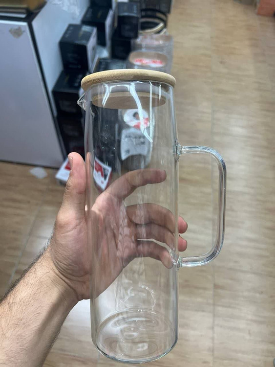 پارچ آب پیرکس وارداتی _پارچ شربت پیرکس طرح کلاسیک _ پارچ شربت پیرکس کلاسیک_درب بامبو