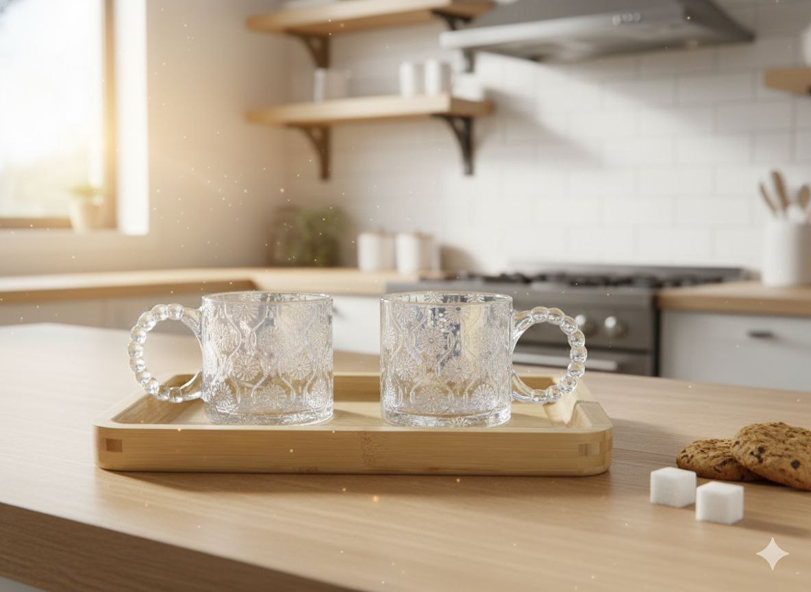 دستهی هر لیوان با طراحی مرواریدی زنجیرهای خاص و برجسته، علاوه بر جذابیت بصری بینظیر، ارگونومی فوقالعادهای دارد. این دسته، ثبات و راحتی در دست گرفتن را تضمین میکند و حس لوکس بودن را در دستان شما کامل میسازد.