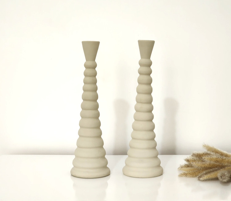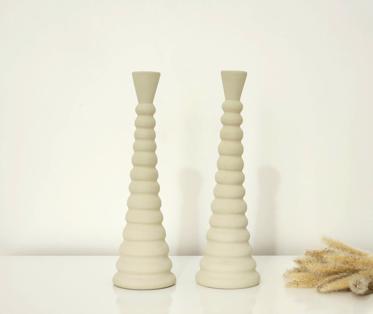 ست شمعدان هلما شامل دو عدد شمعدان سفالی دهانه باریک زیبا است