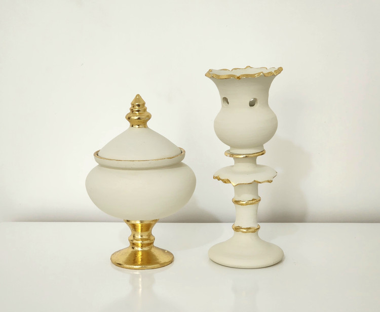 این نوع شمعدان و شیرینی خوری زیبا در مجموعه دو عددی توسط هنرمندان گروه سیمرغ ساخته شده است .