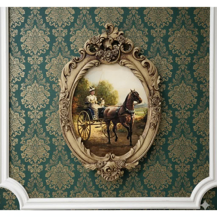 حس لذت بخشی به فضای کار و استراحت شما می دهد ، پتینه بکار رفته در این قاب اولین طرح خاص گالری ما است و بسیار برای آن وقت صرف شده که باعث جلب رضایت شما عزیزان گردد ، نقاشی مخمل بکار رفته در این تابلو از مدل معروف نقاشی کلاسیک فرانسوی برگرفته از پارچه مخمل با کیفیت است که این طرح فرانسوی زیبا و جذاب؛ هر بیننده ای را مغلوب خود می کند