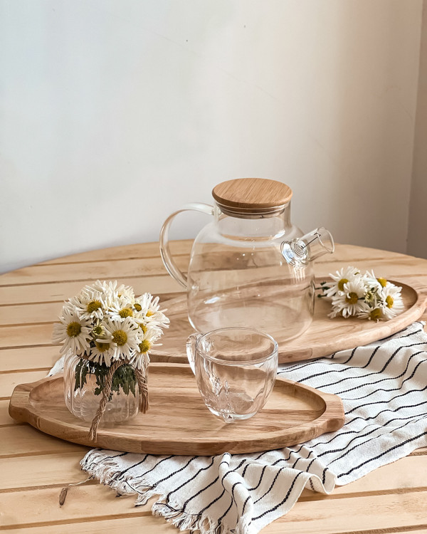 قوری پیرکس درب بامبو وسیله ایست که هم میتوانید از آن به عنوان پارچ استفاده کنید و هم به عنوان کتری و قابلیت این را هم دارد که به صورت مستقیم آن را بر روی شعله گاز قرار دهید . علاوه بر آن میتوانید درون آن انواع دمنوش ها را هم آماده کنید . جنس بدنه این کتری از پیرکس درجه یک شفاف ساخته شده است و درب آن نیز از بامبو است .