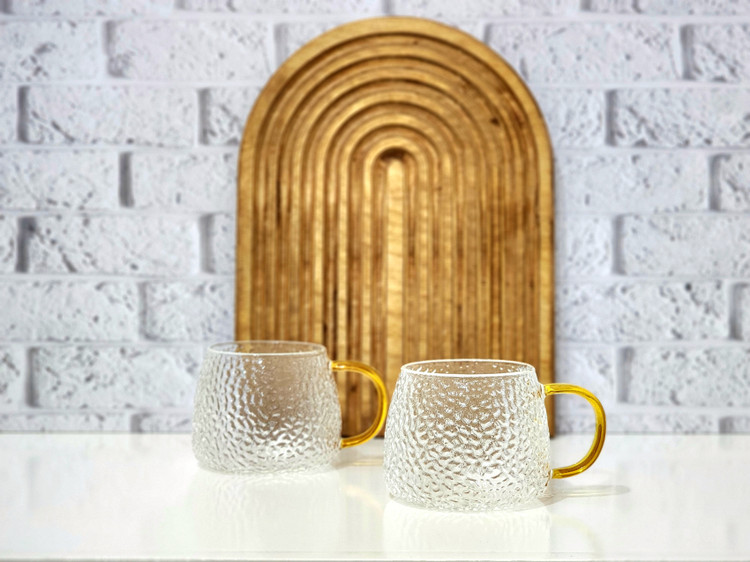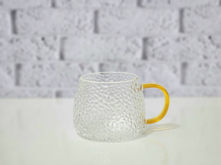 ماگ پیرکس دسته طلایی خمره ای-ماگ شیشه ای-وارداتی امارات