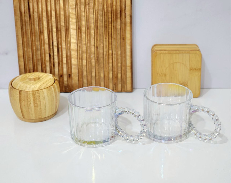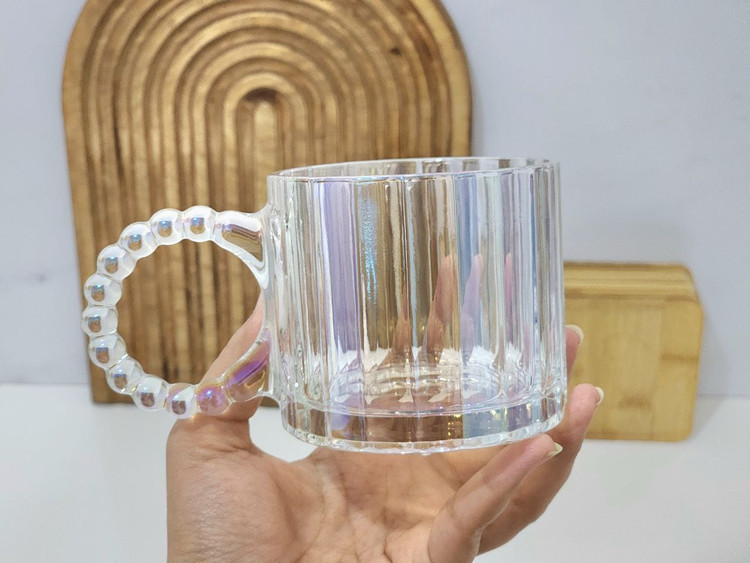 - سرویس یکجای ماگ دسته مروارید رنگین کمان با جنس پیرکس با کیفیت