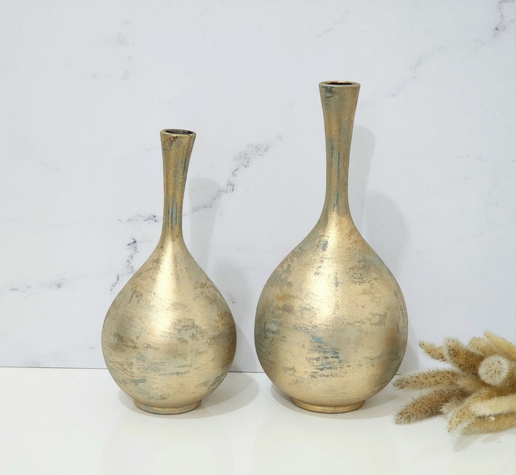 گلدان های سوفیا در دو تنوع سایز موجود است با رنگ پتینه کاری طلا بسیار دقیق و حاذقانه توسط هنرمندان ما هنرنمایی شده اند